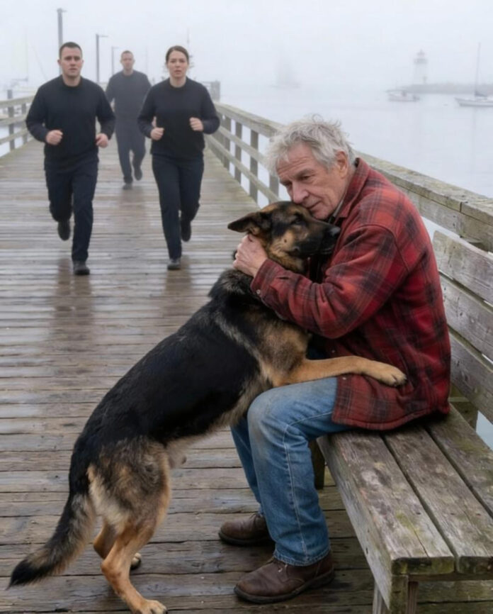 The dog was large, powerful, with dark intelligent eyes and a coat dulled by the salt air. No leash. No collar badge. Yet the way it leaned into Rafael spoke of absolute trust. Its body pressed close, not out of fear, but out of choice—as if the old man were the only safe place left in the world.