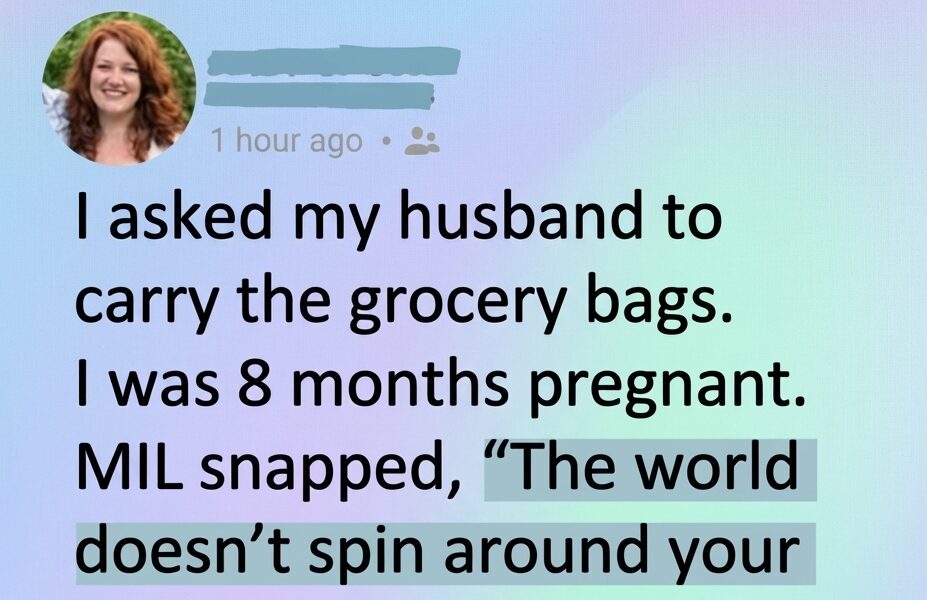 By the eighth month of my pregnancy, everyday tasks had started to feel much more demanding. Simple things like walking up the driveway or carrying groceries required extra effort, and by the end of the day I often felt physically drained. One evening, after my husband and I returned home from the grocery store, I asked if he could help carry the bags inside. It seemed like a small and reasonable request considering how far along I was. Before he could respond, however, my mother-in-law quickly stepped in. She insisted that pregnancy was not a reason to expect special treatment and suggested that I should handle the tasks myself. What made the moment even harder was that my husband said nothing. His silence left me feeling alone and unsupported during a time when I needed reassurance the most.