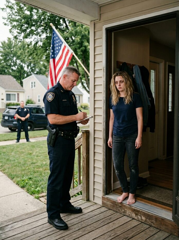 I dragged on the first robe I found and went downstairs. Through the peephole I saw two police officers on the porch—one older, one younger, both wearing the tired expressions of men who had already been handed too much of someone else’s nonsense and it wasn’t even breakfast yet.