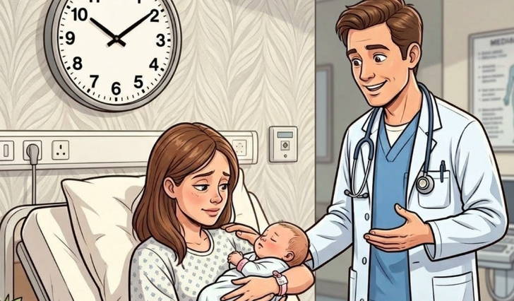 Imagine a peaceful scene inside a hospital maternity room. A new mother sits comfortably while holding her newborn baby, and a doctor stands nearby checking on both of them. Medical equipment is neatly arranged around the room, and everything appears calm and routine. On the wall hangs a clock, quietly marking the passing time. At first glance, nothing in the room appears unusual, and most viewers assume the scene represents a normal moment after the birth of a child. However, hidden within this ordinary setting is a small detail that many people fail to notice during their first look.