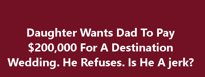 That promise was tested when he learned her plans involved a lavish destination wedding in New Zealand with a jaw-dropping price tag of $200,000. Shocked by the cost, he admitted the expense felt like “burning money” and worried it would exclude family members who couldn’t afford international travel or didn’t have passports. Torn between wanting to make his daughter happy and feeling the request was excessive, the father turned to Reddit’s “Am I the A*****e” forum for advice.