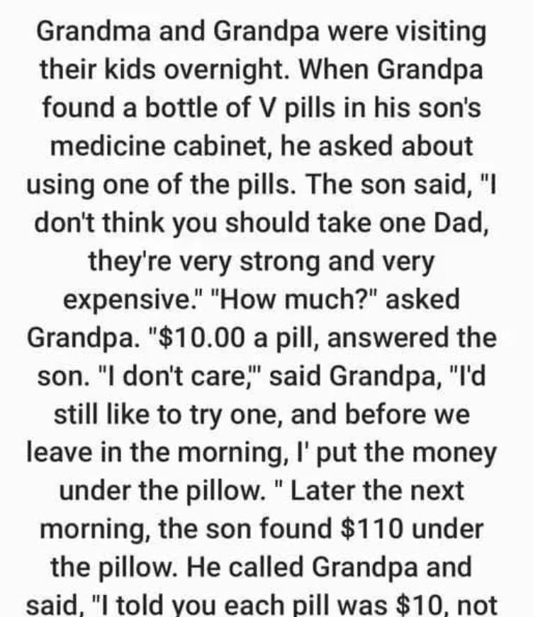 I told you each pill was $10, not $110. “I know,” said Grandpa.