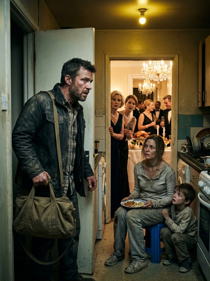 I stepped into the back kitchen and saw my wife sitting on a plastic stool under a weak bulb, feeding my son off a chipped plate. Torn dress. Hollow face. Thin wrists. Two changes of clothes stacked against the wall. A pillow. A bucket. A pot.