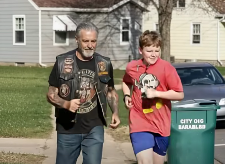 For three months, I watched from my kitchen window as a stranger in a leather vest jogged beside my thirteen-year-old son, Connor, every morning at exactly 6 AM. The man looked intimidating at first glance—tattoos, boots, and a worn biker vest—but the way he matched Connor’s pace so patiently made me believe he was simply a kind neighbor. I didn’t know who he was or why he cared, only that my son returned home calm, steady, and smiling. After months of feeling helpless because of my own health limitations, seeing Connor at peace again felt like a gift I could never repay.