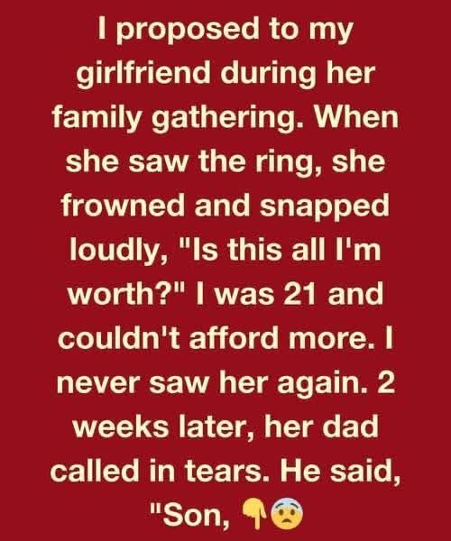 I was 21 and couldn’t afford more. I never saw her again. 2 weeks later, her dad called in tears. He said, “Son, I need to talk to you.”