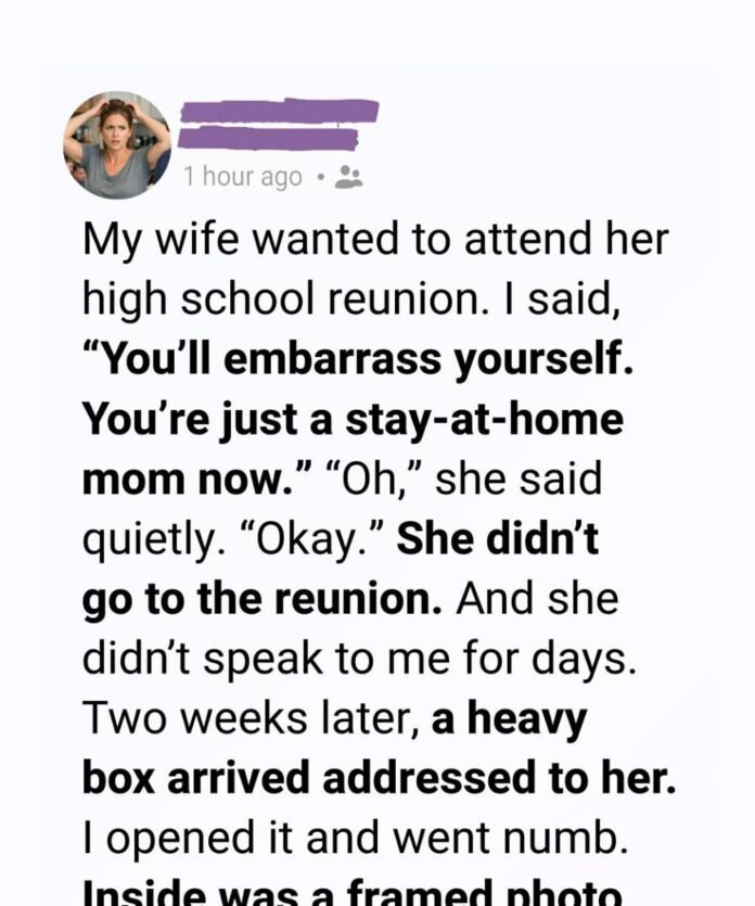 Inside was a large, professionally framed photo of her graduating class. Rows of smiling faces. People I’d heard stories about over the years but never met.