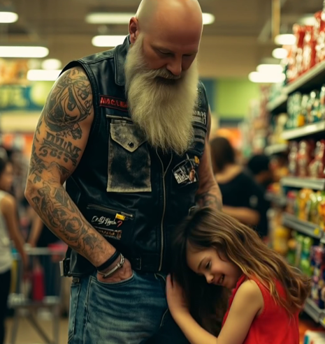 The kid never said a word, just held onto the thick leather of my jacket like it was a lifeline, those huge brown eyes tracking my every move while her mother threatened punishment if she didn’t let go. Other shoppers stared, some recording on their phones, all of them assuming I was the problem big tattooed biker being stalked by a special needs child whose mother was trying to protect her. The whispers were loud enough to hear. “Disgusting.” “Someone should call the police on him.” But when the little girl finally slipped a notebook into my jacket pocket, everything I thought I knew about the situation shattered. The notebook was small, pink, covered in unicorn stickers. Inside, in crayon, were four words that made my blood run cold: “He hurts us. Help.” Below it were drawings. Stick figures, but clear enough. A big man with a belt. A small girl and a woman crying. And at the bottom, in shaky letters: “Not Mommy. Mom’s boyfriend. Please.” The mother was still yelling, calling for security, making a scene about the “dangerous biker” her daughter wouldn’t leave alone. But now I understood. The yelling wasn’t anger; it was terror. She was performing, playing the part the monster at home demanded, praying no one would intervene in a way that would get them hurt worse later. The kid wasn’t following me because she was fascinated by motorcycles. She was following me because she was out of options, and in a world of smiling, respectable-looking people who ignored her bruises, my leather-clad, scarred-up self must have looked like the only one who might know how to fight a real monster. I knelt down to the girl’s level, ignoring her mother’s shriek of “Get away from her!” “What’s your name, sweetheart?” I asked softly. She didn’t speak couldn’t, as I’d later learn but pointed to the notebook. There, on the inside cover: “Emma.” “Emma’s a pretty name. I’m Bear.” Her mother grabbed Emma’s arm, hard enough to make her wince. “We’re leaving. Now.” “Ma’am,” I said, standing slowly, keeping my voice calm and low. “Your daughter seems upset. Maybe we should “Maybe you should mind your own business,” she snapped, her eyes wide with a panic that wasn’t meant for me. That’s when I thought not to help them, but then Emma pulled free from her mother and ran behind me, clutching my jacket again. And for the first time, she spoke, her voice a tiny, desperate whisper that broke a dam inside my soul. “Please, can you follow us home? He’s waiting.” The world narrowed to those six words. The shoppers, the security guard now approaching, none of it mattered. I gave the mother a look, trying to pour every ounce of reassurance I could into it. I understand. I am on your side. I pulled out my phone, turning my back slightly for privacy. I hit the speed dial for my club’s president. “Prez, it’s Bear. Code Nightingale.” It was our code for a child in danger. “Grand Union on 5th. I’m following a blue sedan. Mom and a little girl, maybe six. The threat’s at home. I need a shadow, not a parade. And Prez… call Tina.” Tina was a social worker who trusted us more than the system. “On it,” he said. No other questions asked. I bought a candy bar, paid for it, and walked out. The mother was practically dragging Emma to her car. I got on my bike, the engine rumbling to life, and fell in behind them, keeping a respectful distance. A few blocks later, two more bikes, their engines quiet, joined my tail. We were a silent, leather-clad guardian angel escort service. They pulled into the driveway of a small, neat-looking house. The kind of house you’d never suspect held any darkness. I parked across the street, watching. My brothers pulled up on the cross streets, blocking any escape. We just waited. Ten minutes later, we heard it. A man’s bellowing roar, followed by the sound of something smashing and a woman’s terrified scream. That was the signal. We didn’t storm the house. We walked. Four of us, up the driveway, onto the porch. I didn’t knock. I kicked the door open. It splintered off its frame. The scene inside was exactly what the notebook had drawn. A large, red-faced man holding Emma’s mother by the hair, his hand raised to strike. Emma was huddled in a corner, sobbing. He froze when he saw us, his face a mixture of shock and rage. “Who the hell are you?” “We’re the guys you don’t get to hurt people in front of,” I said, my voice dangerously calm. My brothers flanked me, filling the doorway, blotting out the sun. We didn’t move, didn’t threaten. We just stood there, four immovable objects who had seen real evil in the world and weren’t impressed by this pathetic excuse for a man. He let go of the woman and puffed out his chest. But the bravado died in his eyes when he realized we weren’t leaving. He was a bully, and his only power was fear. We weren’t afraid. Within minutes, sirens wailed in the distance. Not the local cops, but the county sheriff, courtesy of a call from our social worker, Tina, who knew which departments to trust. The boyfriend crumbled. By the time they arrived, we were already on our bikes, ready to leave. A month later, I got a letter at the clubhouse. It was an invitation to a tea party. The address was a new one, a small, clean apartment across town that the club had helped secure the deposit for. When I showed up, Emma, dressed in a bright yellow dress, ran to the door and threw her arms around my legs. Her mom stood behind her, a real, genuine smile on her face for the first time. The bruises were gone. “She talks all the time now,” her mom whispered to me while Emma showed my club brother, a giant named Crusher, which tiny cup was his. “The therapist said breaking her silence to you was the first step. You didn’t just save us, Bear. You gave her back her voice.” Emma tugged on my hand, pulling me to a tiny table. She handed me a new drawing. 