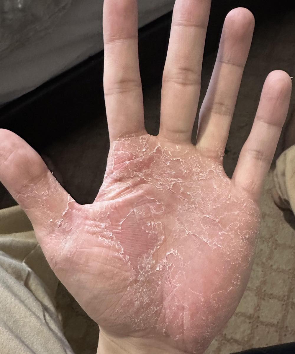 Peeling, scaling, or small open wounds