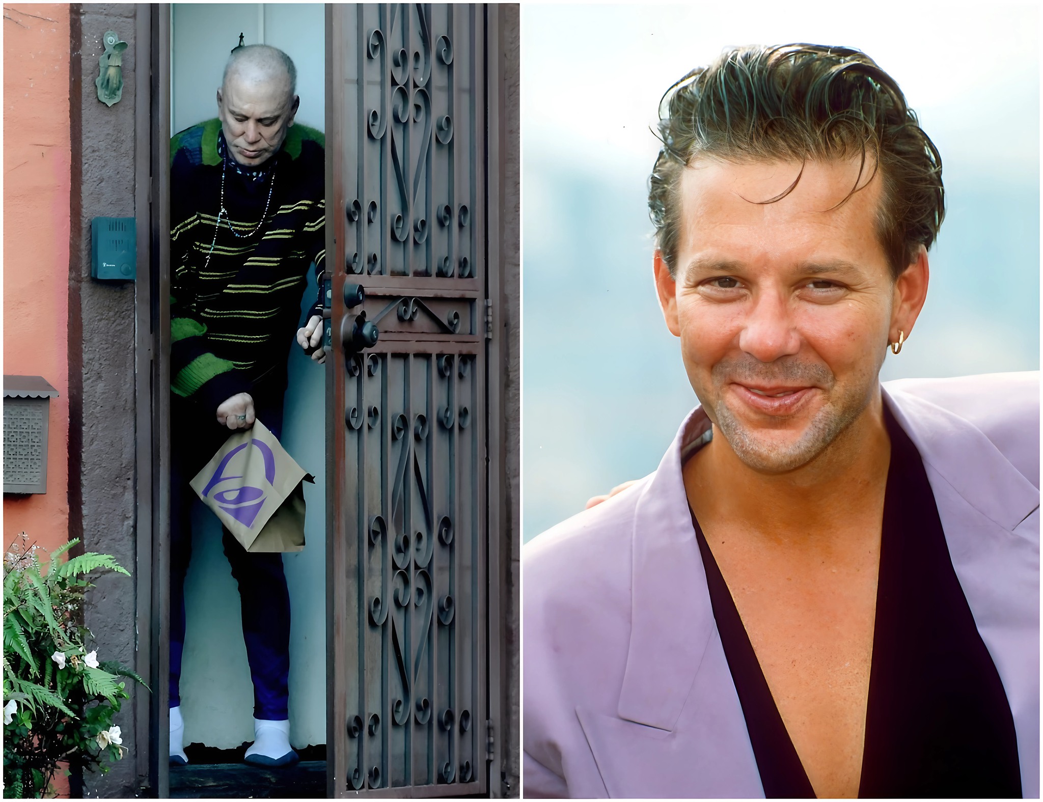 Rourke, 73, opened the front door to pick up a few food deliveries, first grabbing a bag of Taco Bell delivery and then securing two paper bags filled with groceries from Pavilions.