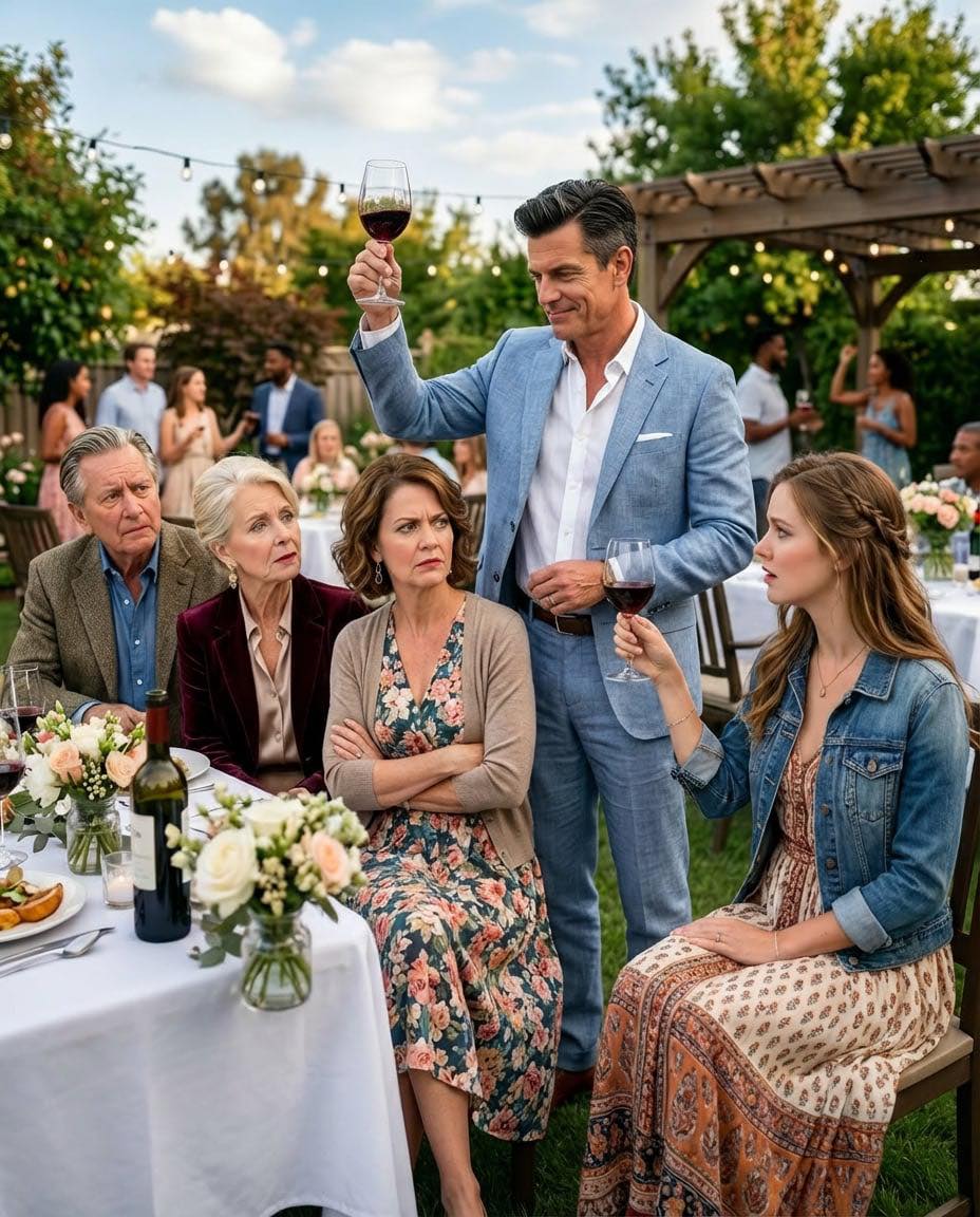And when he lifted his glass for the toast, started toward our side of the table, then stopped directly in front of me with real surprise on his face, the room fell completely silent.