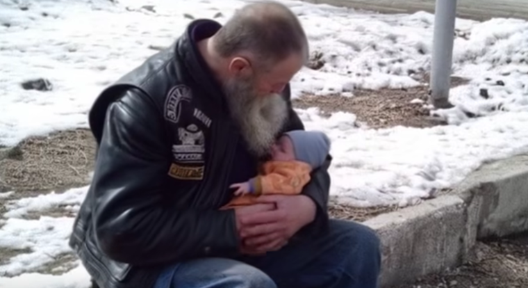 Most people slow down at seventy, but not Tank. At 71, his life had already been a patchwork of wild adventures — long nights on the open road, near-fatal crashes, bar fights that left scars, and even the memories of a brutal tour in Vietnam. He thought he had seen it all. But one freezing winter night in Montana changed everything. Inside a dimly lit gas station bathroom, he stumbled upon something that shook him to his core: a newborn baby wrapped in a flimsy blanket, shivering in the cold. Next to her was a note scrawled in desperation: “Her name is Hope. Can’t afford her medicine. Please help her.”