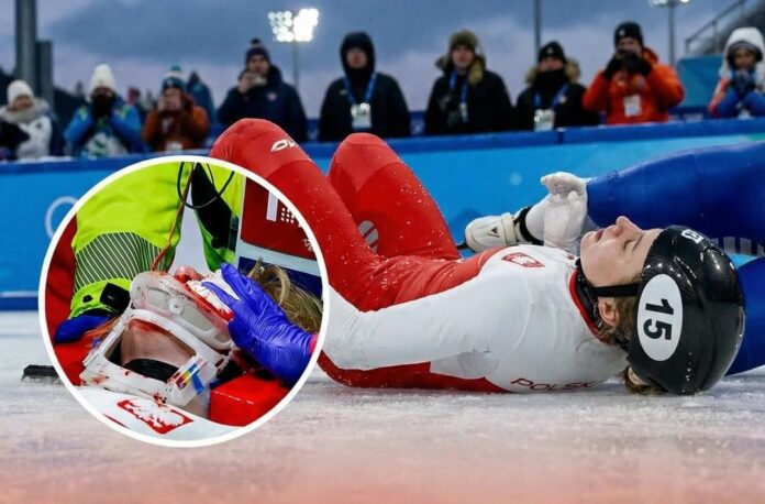 An intense moment during the Women’s 1500-meter short track quarterfinal at the 2026 Milan-Cortina Winter Olympics left fans in stunned silence after a serious on-ice collision brought the race to an abrupt stop. Polish skater Kamila Sellier suffered a significant facial injury when a fall by Team USA’s Kristen Santos-Griswold led to unintended contact between skate blades. The incident also involved Italy’s decorated Olympian Arianna Fontana, immediately halting competition as medical teams rushed onto the ice. What began as a high-stakes race quickly shifted into a moment of concern for athlete safety.