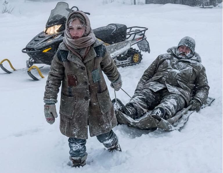 The wind fought her like a living thing, shoving snow into her face, stealing the path from under her feet. She leaned into the rope harness she’d knotted herself months ago, the sled scraping and bumping behind her. Every few steps, she checked him—pressed her ear to his chest, counted breaths that came slower now.