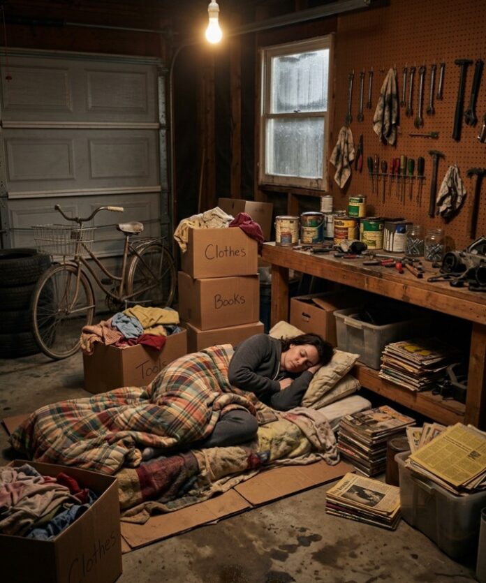 “Mom is being stubborn,” he muttered. “Could you… maybe stay in the garage? I’ll set up a mattress. You can light some scented candles. It’ll be like camping!”