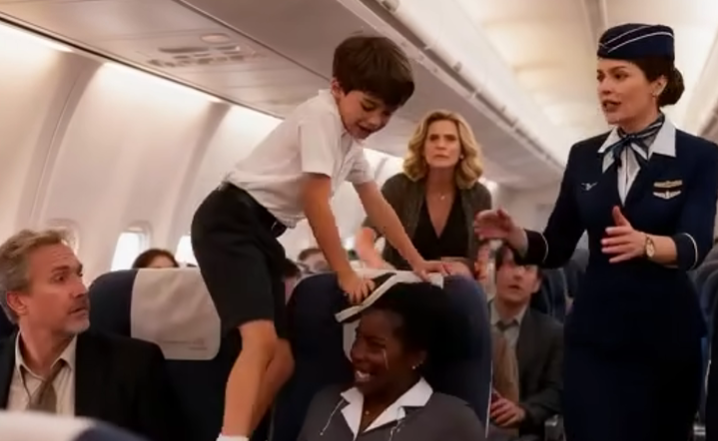 The trouble began shortly after takeoff when Amara, a 22-year-old student heading home to Chicago, felt a series of sharp kicks against the back of her seat. She turned politely to the young boy behind her, hoping for understanding, but the situation quickly escalated. Instead of guiding her son, the boy’s mother dismissed Amara’s request and openly blamed her for the disturbance. When a flight attendant calmly stepped in to help, the mother’s behavior worsened, creating tension throughout the cabin and making other passengers increasingly uncomfortable.