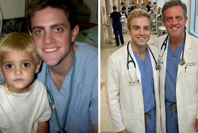 My wife and I met him the next day, unsure where the path would lead but certain he deserved stability and love. One visit turned into many, and soon he became part of our home—tentative at first, sleeping on the floor beside his bed, calling us “Doctor” and “Ma’am,” unsure whether letting himself hope was safe. Slowly, trust grew in quiet ways: a hand held during a fever, a whispered “Mom” during a restless night, a shout of “Dad!” after a scraped knee. As he grew, he filled every corner of our home with kindness, determination, and a deep desire to give back. Education became his way of honoring the second chance he’d been given, and eventually he chose a path in medicine, hoping to help children who faced challenges similar to his own. The day he matched at our hospital as a surgical resident, he stood in our kitchen with tears in his eyes, telling me that saving his life had given him a reason to live it fully.