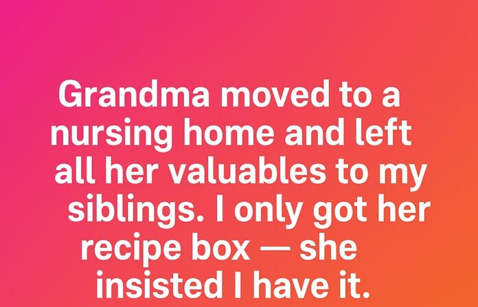 When my grandmother moved into a nursing home, she gave her jewelry and antiques to my siblings. To me, she left only a small wooden recipe box. At first, I didn’t understand why she insisted that it should be mine. My siblings laughed and called it “junk,” and their words stayed with me. Feeling upset, I left the box aside without thinking twice.