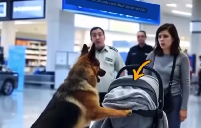 But Luna didn’t obey. For the first time in her career, she didn’t respond to her handler’s command. With astonishing speed, she lunged at the stroller, her heavy paws slamming into the plastic frame. The blue blanket slipped away, and what came into view froze everyone in place.