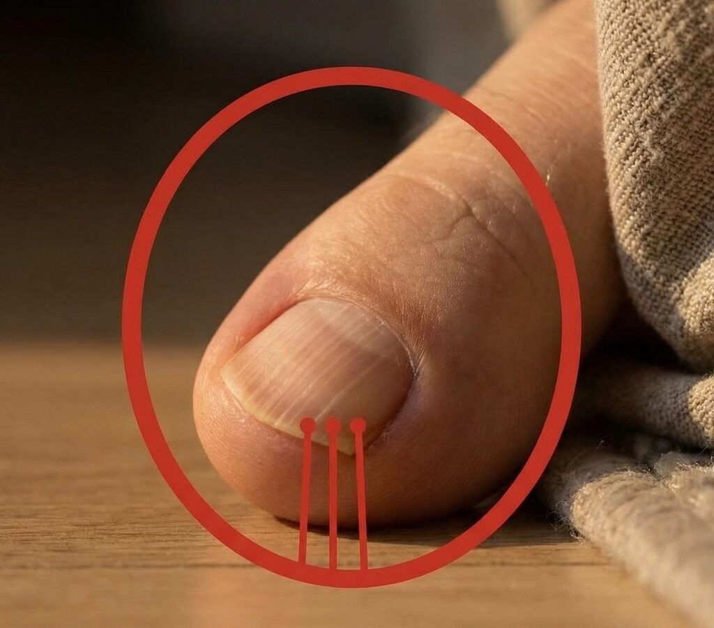 Our bodies often speak in subtle, visual cues, and fingernails are one of the most overlooked storytellers of all. The photo draws attention to faint vertical lines running from the cuticle to the tip of the nail—marks that many people begin to notice more clearly as they move past their forties. These lines are not sudden warnings or hidden messages of decline; rather, they reflect the natural rhythm of aging. As the years pass, nail growth slows, cell renewal becomes less uniform, and moisture retention decreases. Much like fine lines on the skin, nail ridges are a quiet reminder that the body evolves with time.
